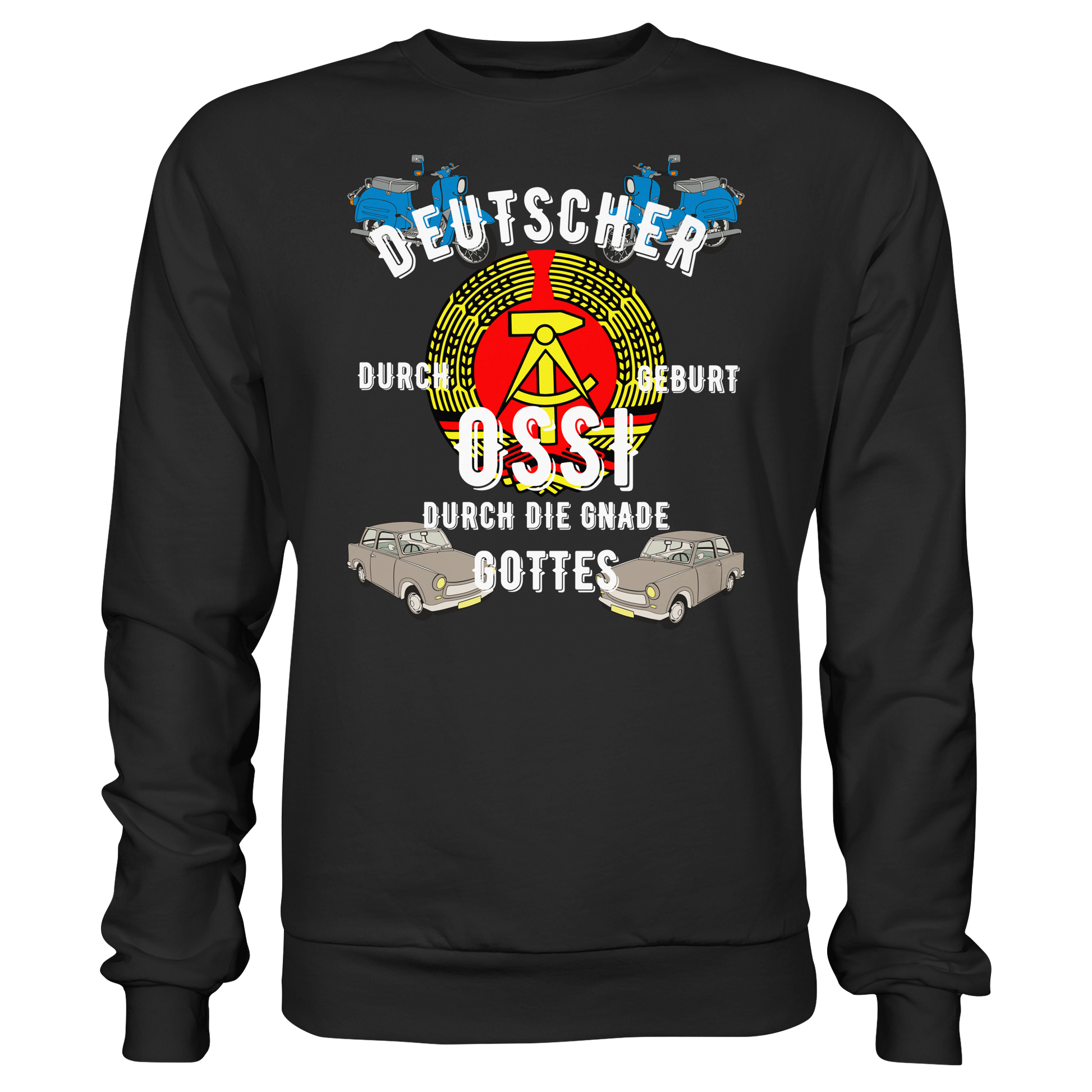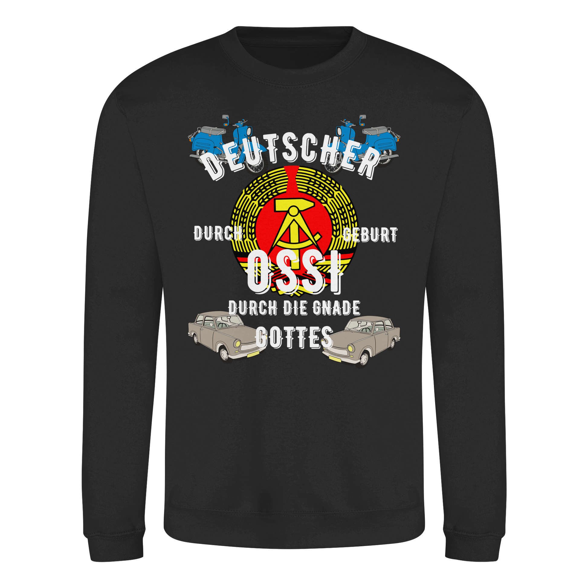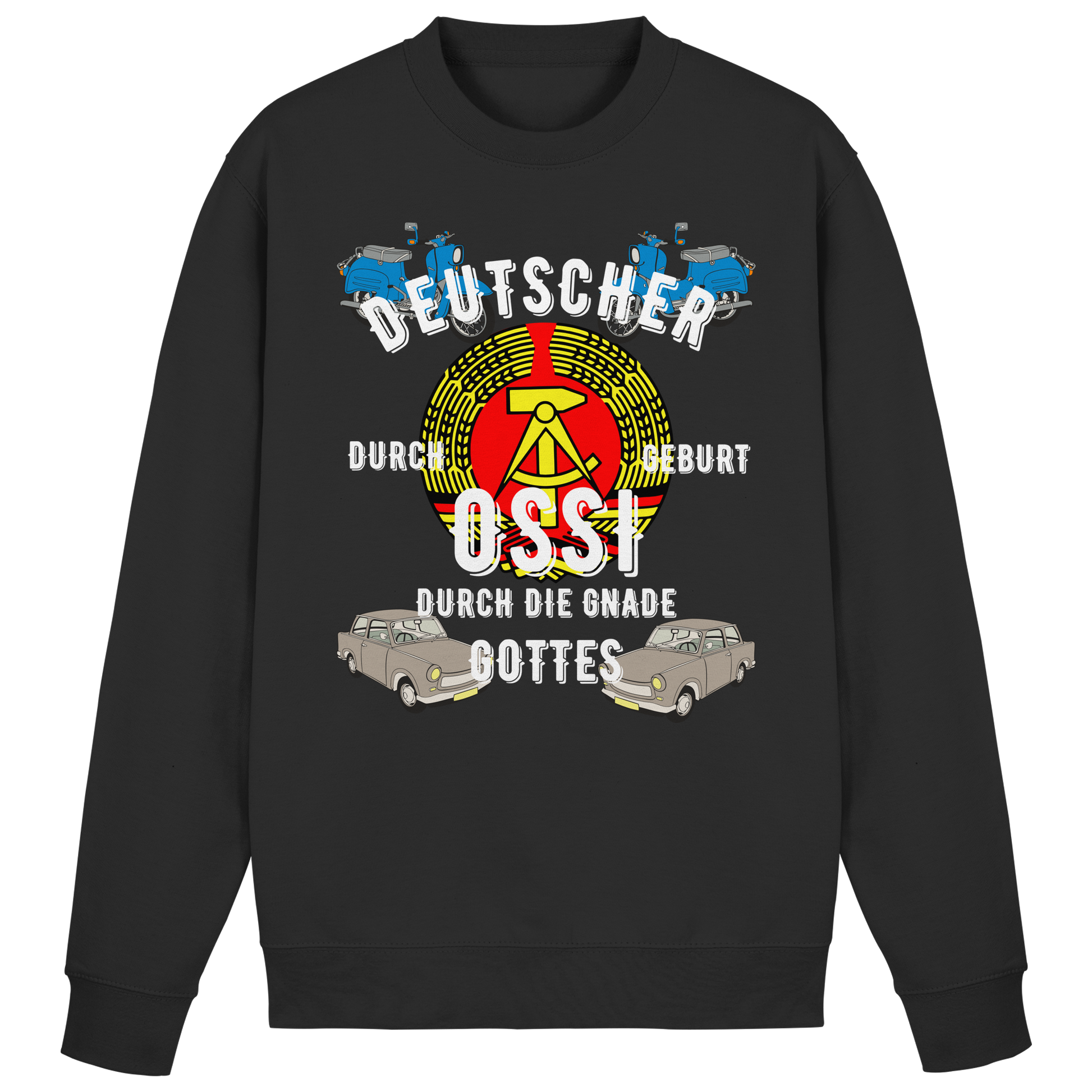 „Deutscher durch Geburt, Ossi durch Gnade Gottes“ Sweatshirt – Humorvolles DDR & Ostdeutschland Design