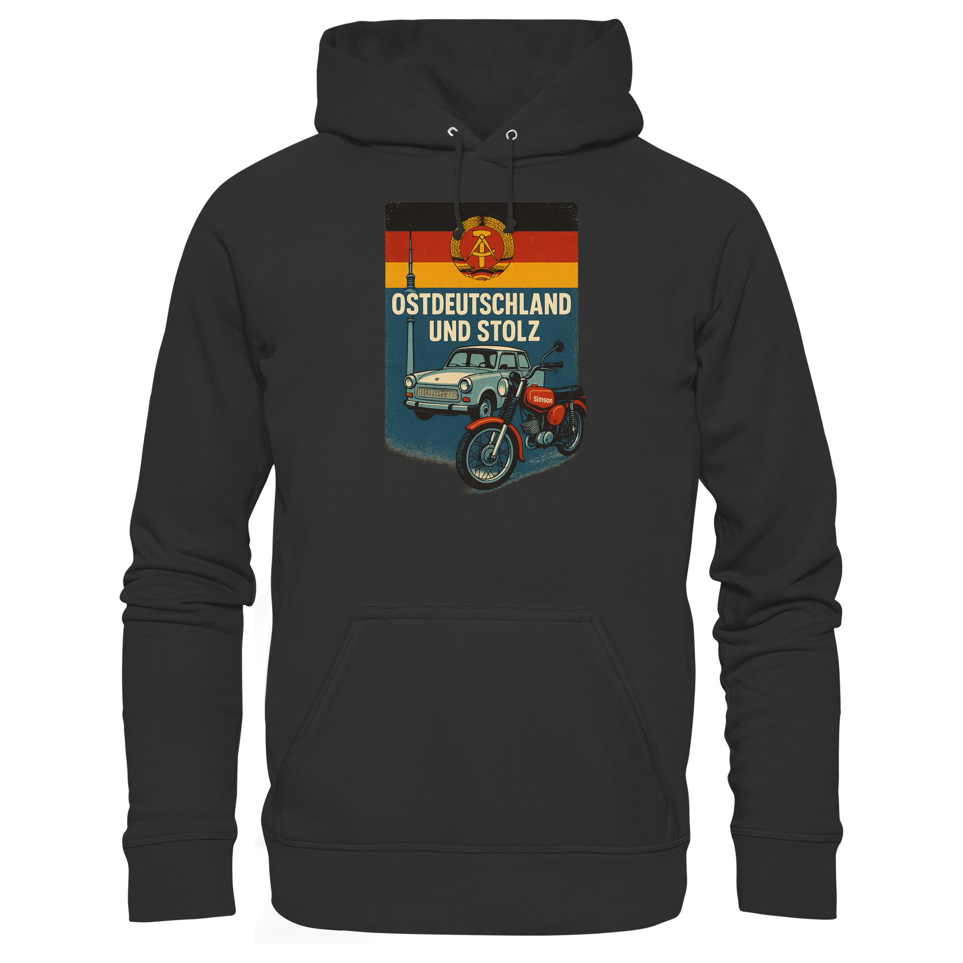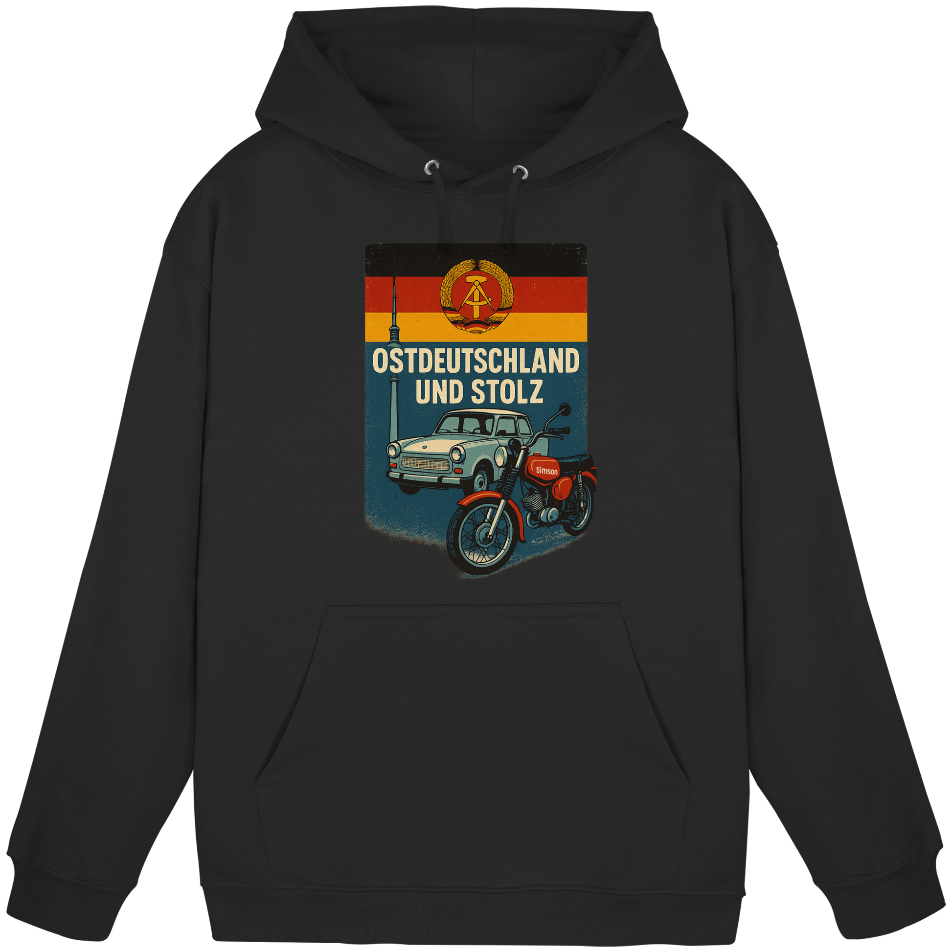 Dieser Hoodie / KaPu / Kapuzenpulli mit dem Spruch „Ostdeutschland und stolz“ steht für Zusammenhalt, Heimatliebe und Charakter.