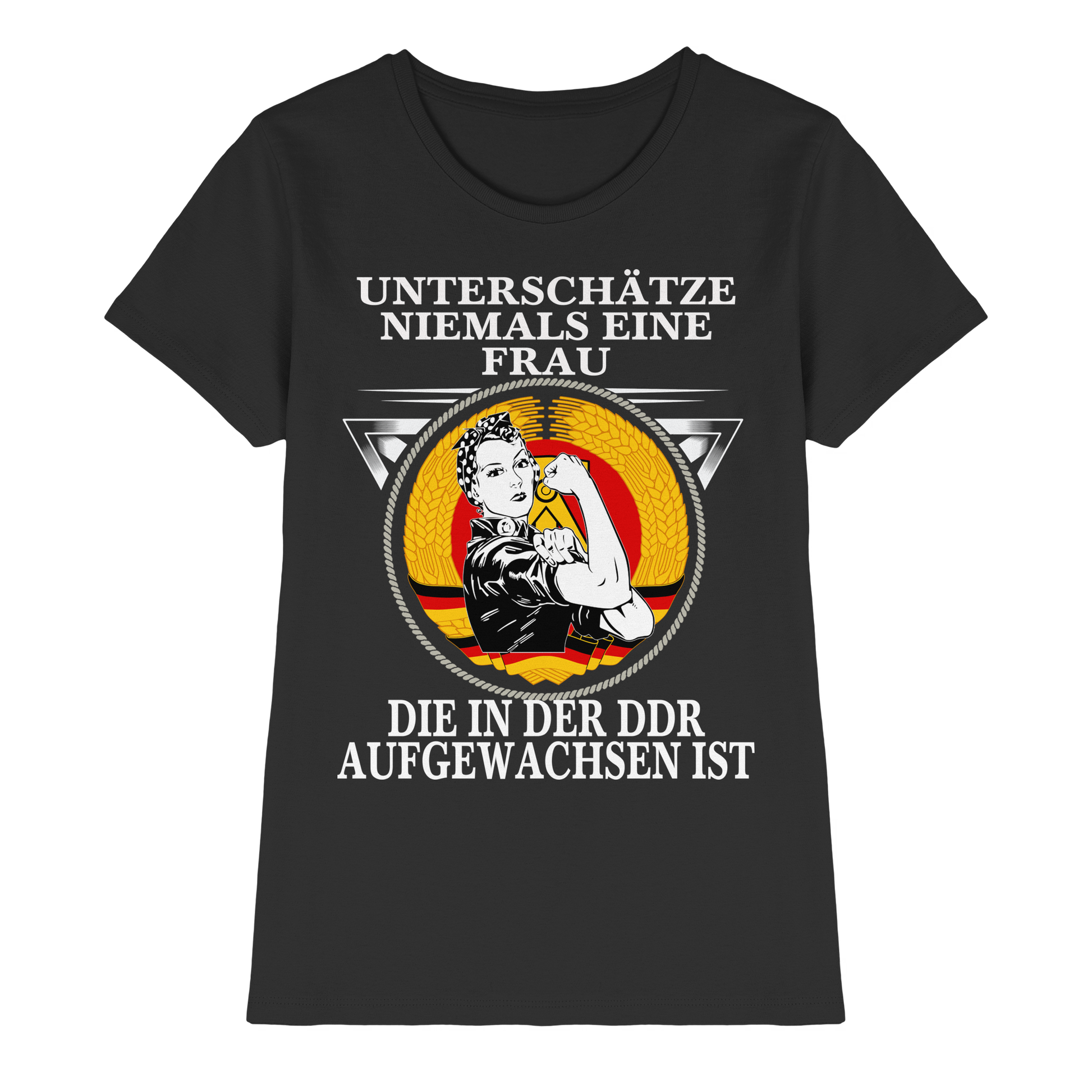 Unterschätze niemals eine Frau, die in der DDR aufgewachsen ist – Ostdeutschland Ladies Shirt / Girly